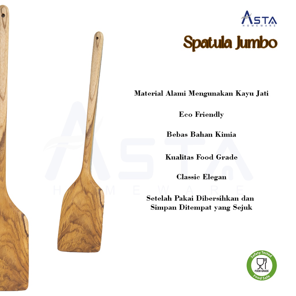 Spatula Kayu Jati Jumbo - Sutil Masak Panjang Besar - Tebal Food Grade - Premium 60 cm