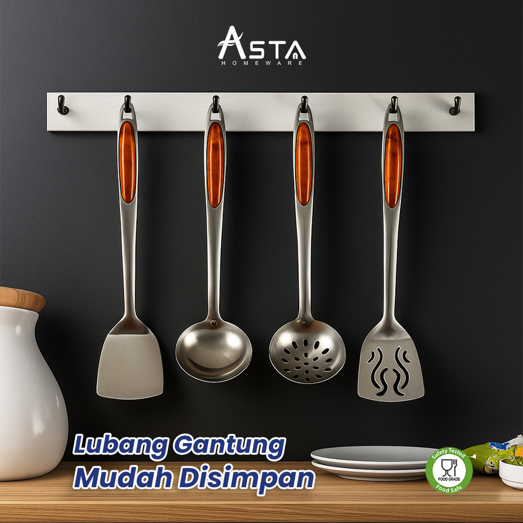 Spatula Stainless Steel - Sutil Irus Centong Sayur - Tebal Food Grade 27 cm | Asta Homeware