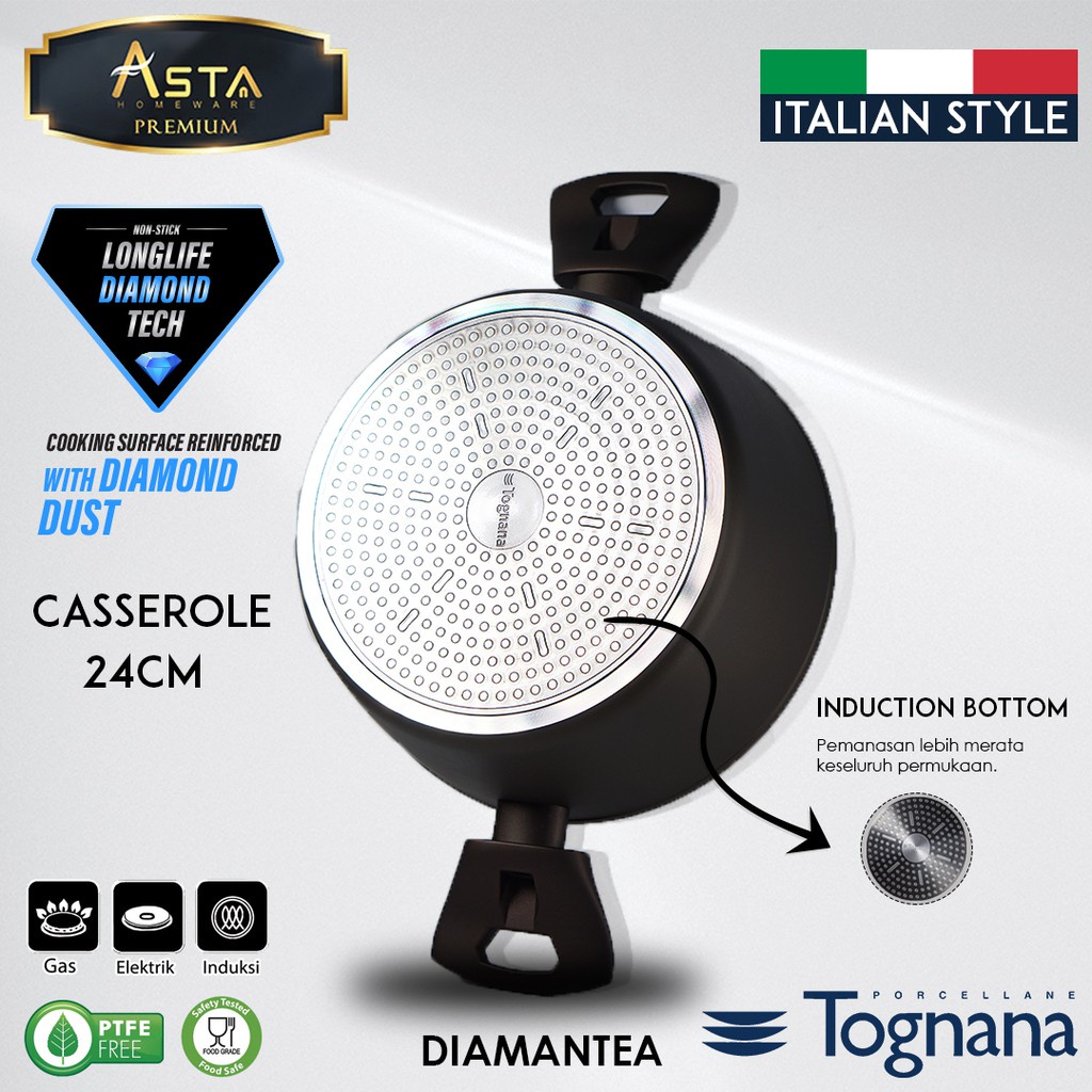 Tognana Italy Premium Casserole Panci Masak Anti Lengket 24 cm