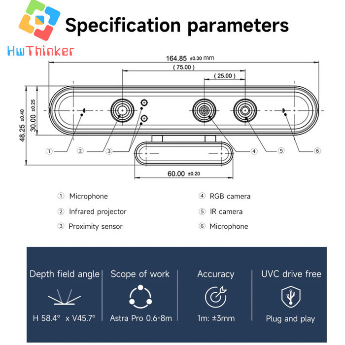 Astra Pro Plus AstraPro Realsense Deep Cam Depth Camera 3D RGBD for Raspberry Pi ROS Orbbec