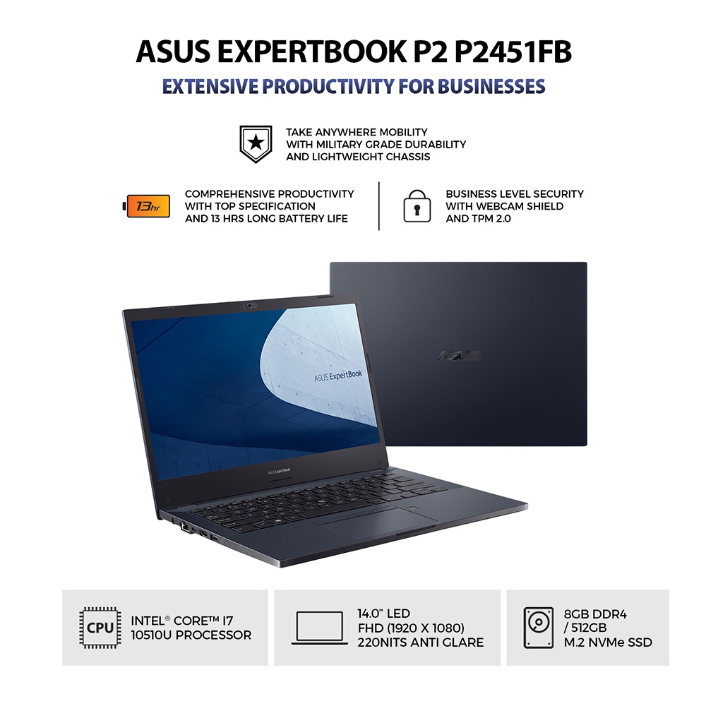 Asus ExpertBook P2451FB-EK7850T CI7-10510 8GB 512GB MX1102GB 14,0 FHD WIN10 + FREE RAM 8GB & OFFICE