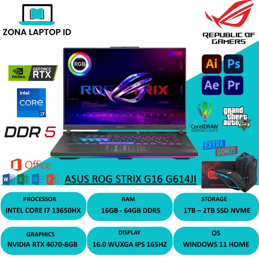 Asus ROG STRIX G16 G614J1 Intel i7 13650HX 64GB SSD 2TB Nvidia RTX4070 165Hz Windows 11 Original