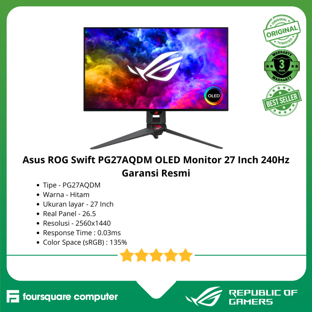 Asus ROG Swift PG27AQDM OLED Monitor 27 Inch 240Hz Garansi Resmi