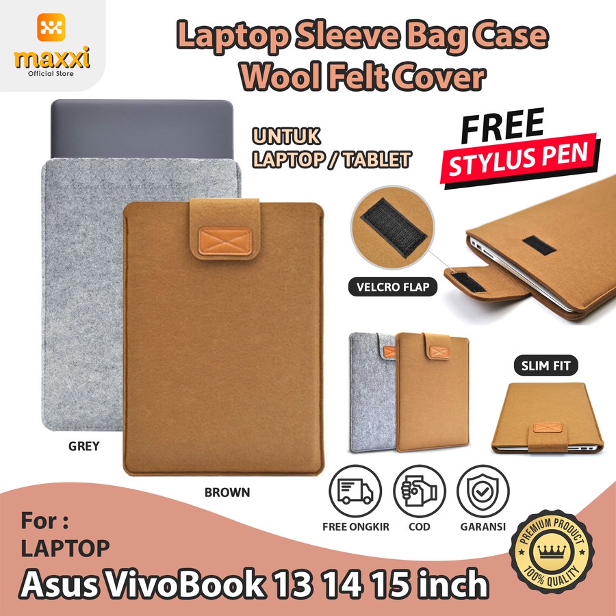 Asus VivoBook 13 14 15 inch Laptop Bag Soft Protector Sleeve Case Felt Kanvas Pouch Velcro Perekat Model Envelope Canvas Kesing Sarung