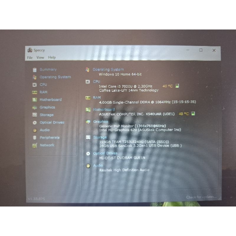 Asus VivoBook X540U, 15 inch, core i3 gen 7, ram 4gb ssd 240gb
