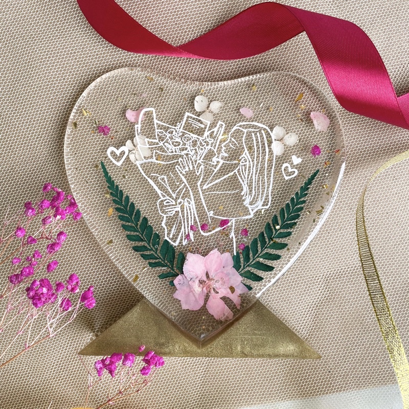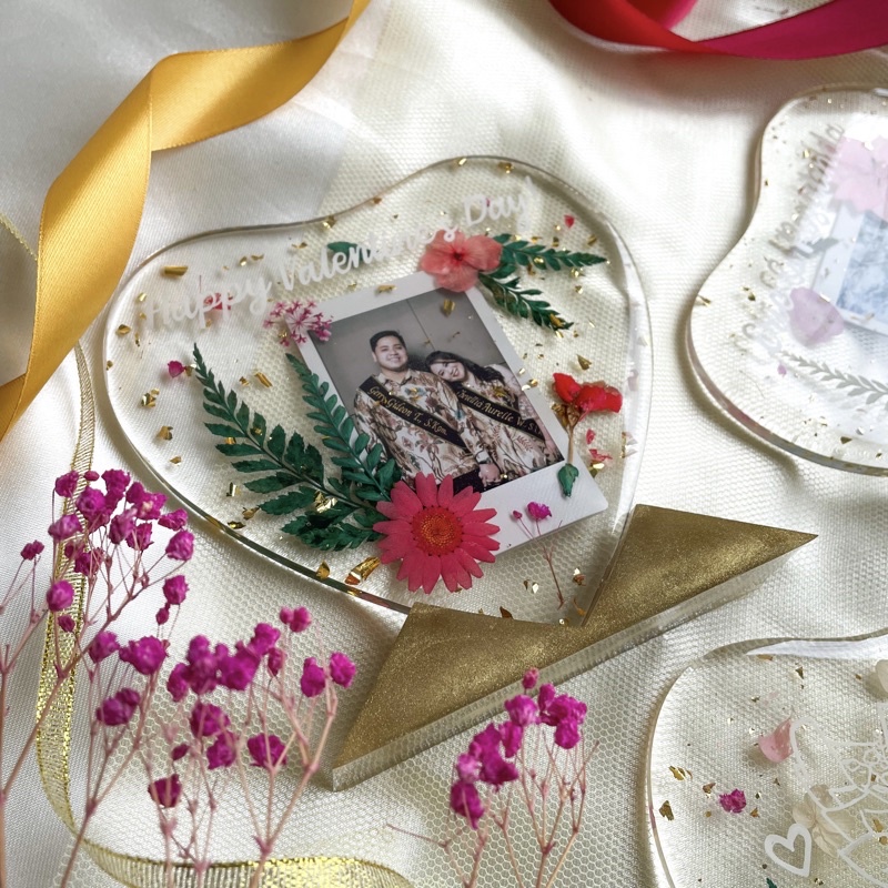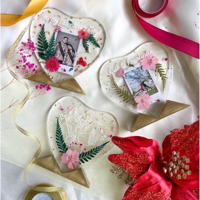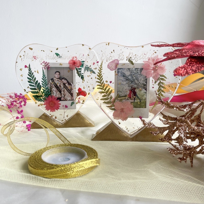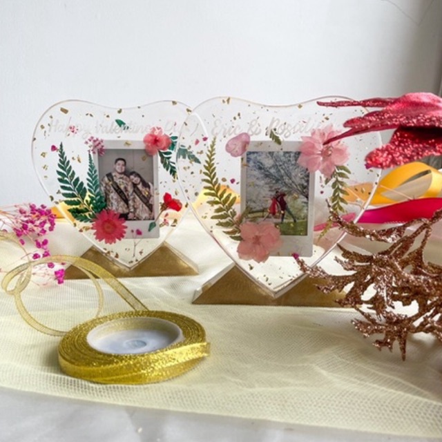 Asymmetric Resin Stand | Hadiah Wisuda/ Anniversary/ Ulang Tahun | Bingkai Foto Aesthetic Bentuk Hati