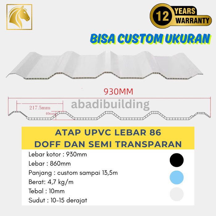 Atap UPVC Double Layer Semi Transparan / Transluscent Masuk Cahaya Lebar 86cm Golden - Bukan Alderon 860 Dr Shield Rooftop Maxideck Holodeck - Corrugated PVC Hollow Roof