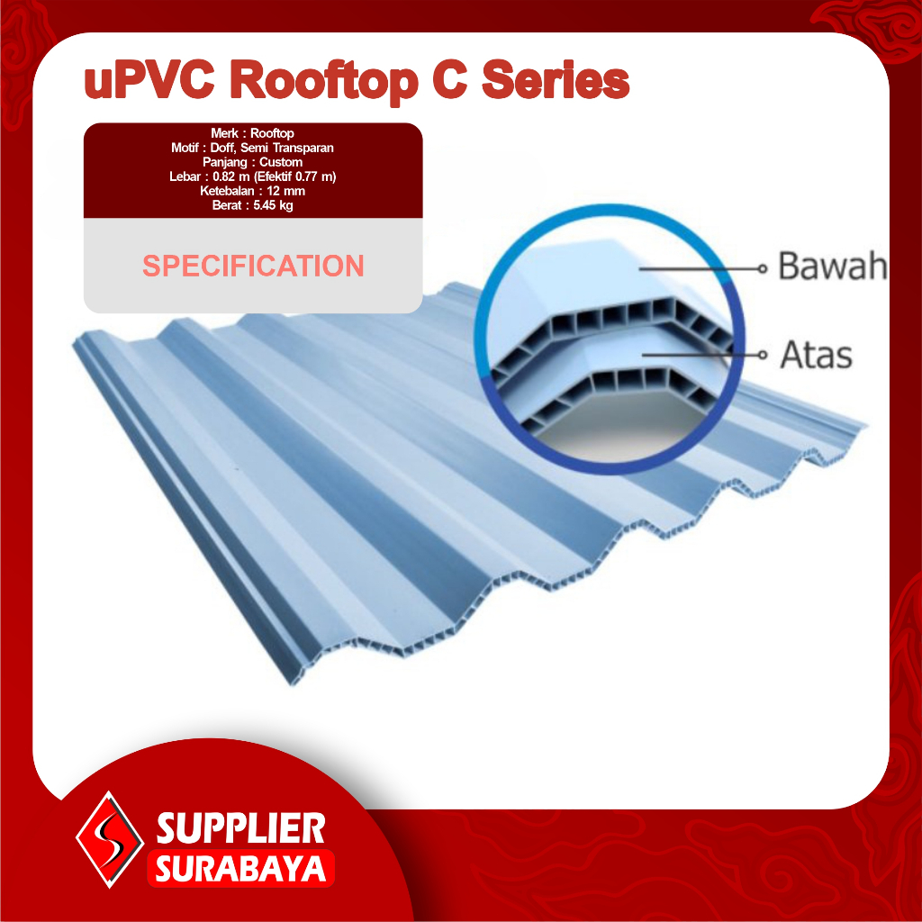 Atap uPVC Rooftop C Series C-Series Ketebalan 12mm | ATAP DINGIN UPVC ROOFTOP TIPE C-SERIES