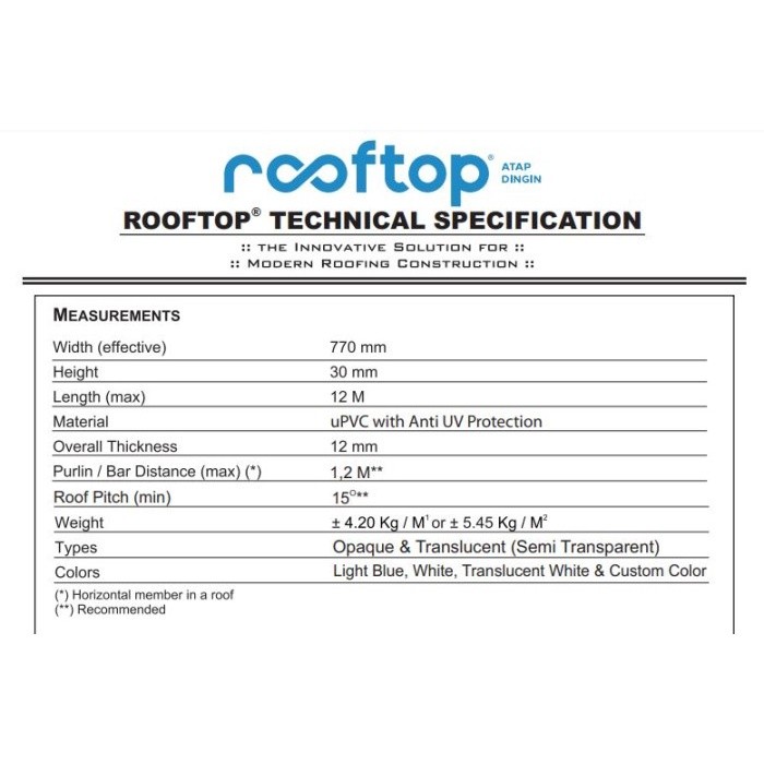 Atap uPVC Rooftop C-Series Tebal 12mm Dingin Rumah Gedung Ruko 4 meter