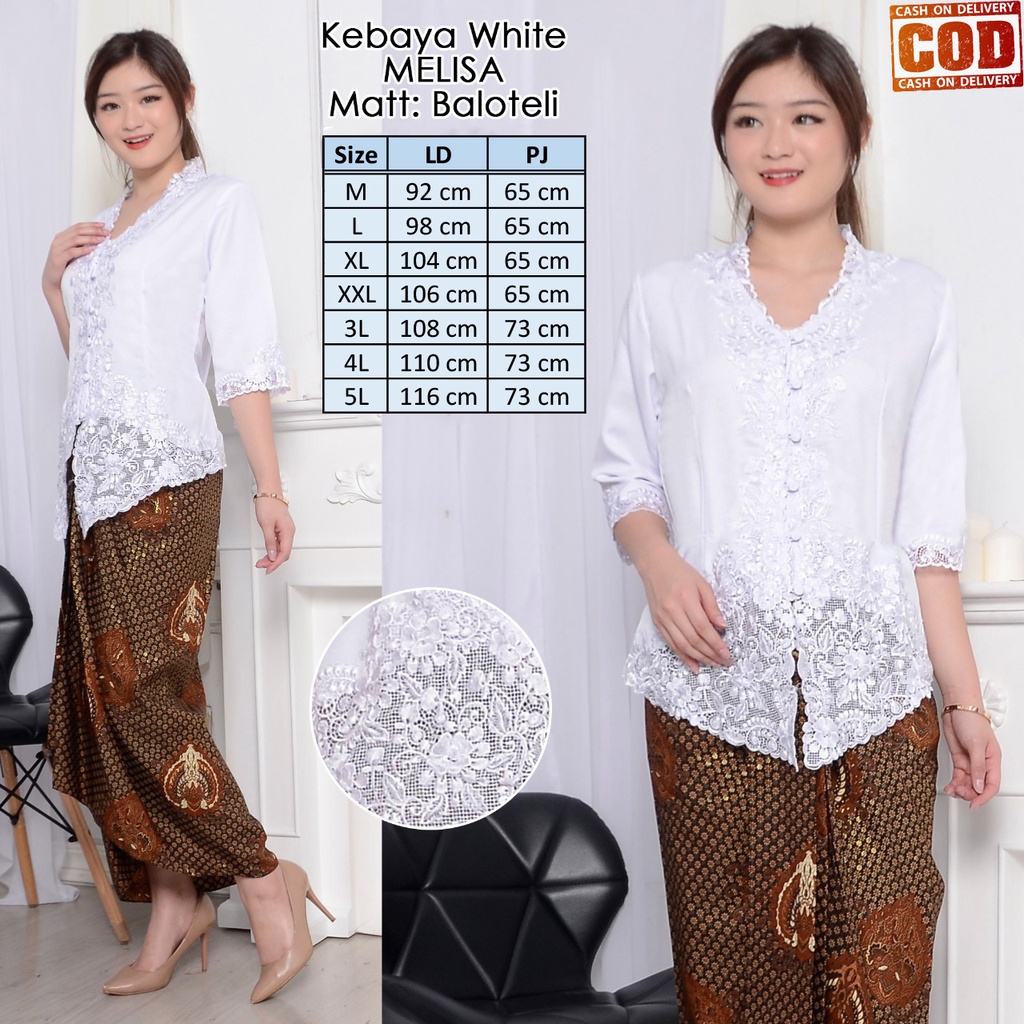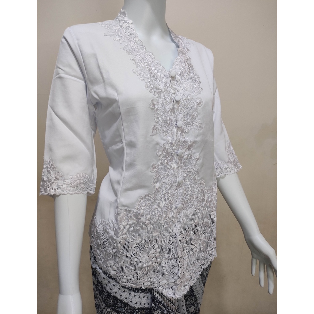 Atasan Kebaya Bordir Modern Terbaru Lengan 3/4 Warna Putih Cerah Elegan Cantik | Kabaya Wisuda Moderen Mewah Acara Pesta Kondangan Akad Nikah Tunangan Terbaru Kekinian Melisa