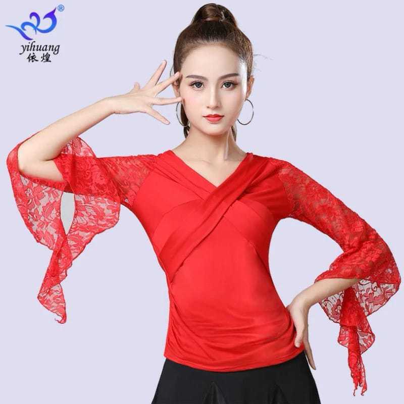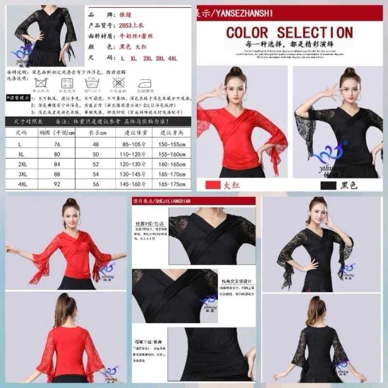 Atasan LLengan 3/4 Lengan Renda Atasan Dance Premium Lengsn Lapa Renda Kaos Line Dance Bely Dance Salsa Latin Kostum Model Import Terbaru Termurah Terlaris ASLR-543