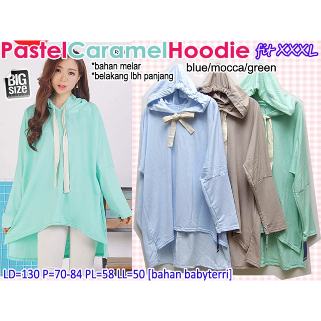Atasan Wanita Pastel Caramel Hoodie Lengan Panjang XXXL Sweater Penutup Kepala JUMBO BIG SIZE BESAR