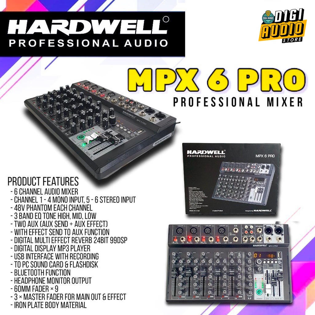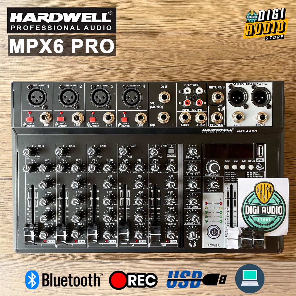 Audio Mixer 6 Channel HARDWELL MPX 6 Pro USB Soundcard - Efek Vocal dan Bluetooth Mp3 Player MPX6