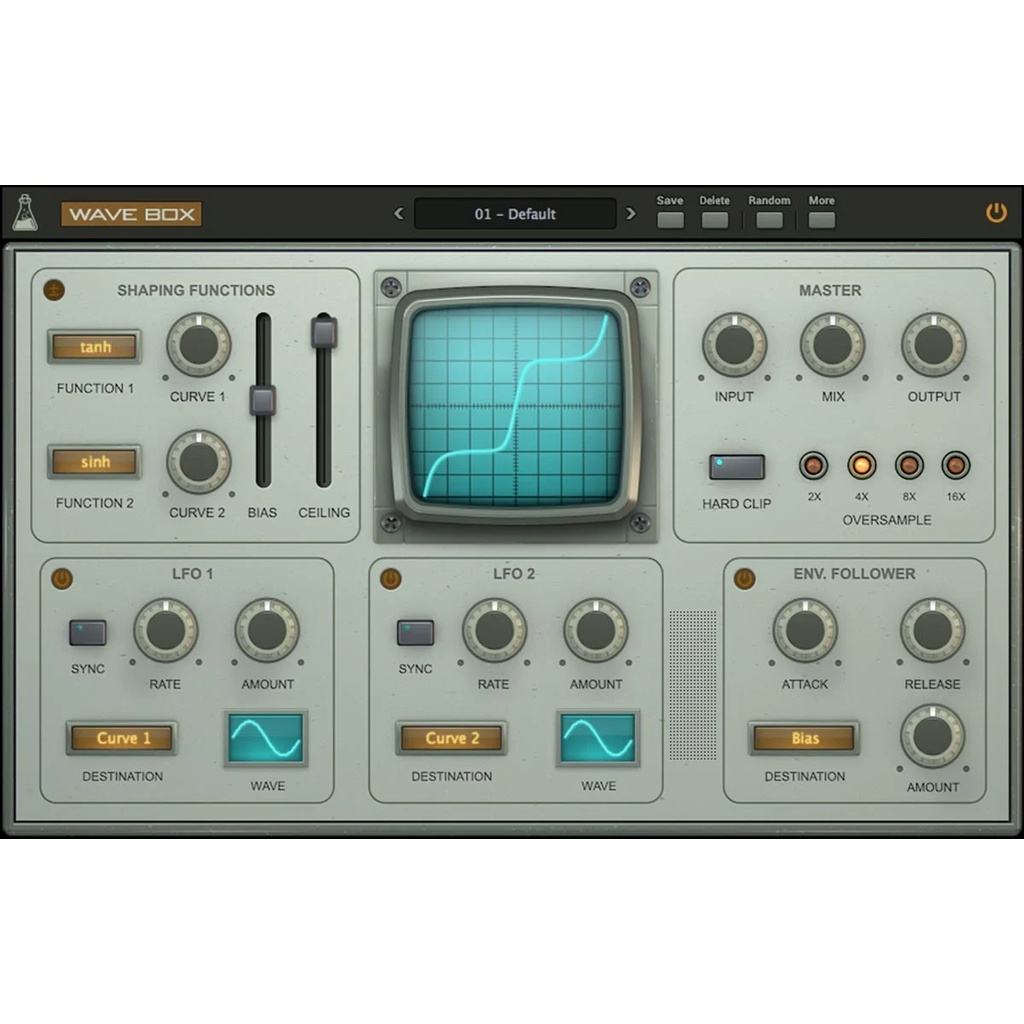 AudioThing Wave Box VST Plugin dynamic dual waveshaper plugin that can be used for both symmetrical and asymmetrical distortion - windows