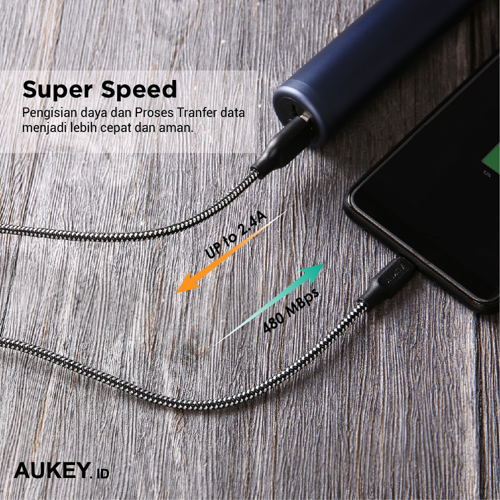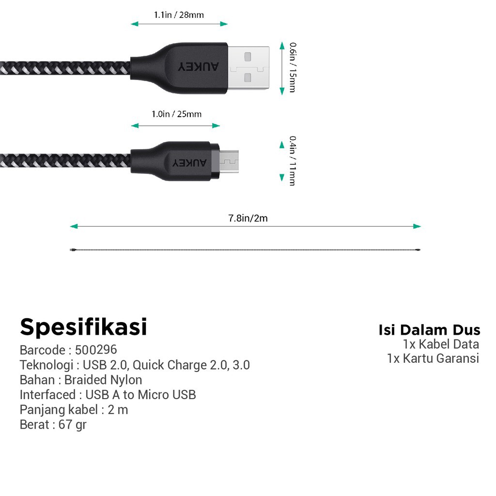 Aukey Cable CB-AM2 2M Micro High PerformanceBraided Black - 500296