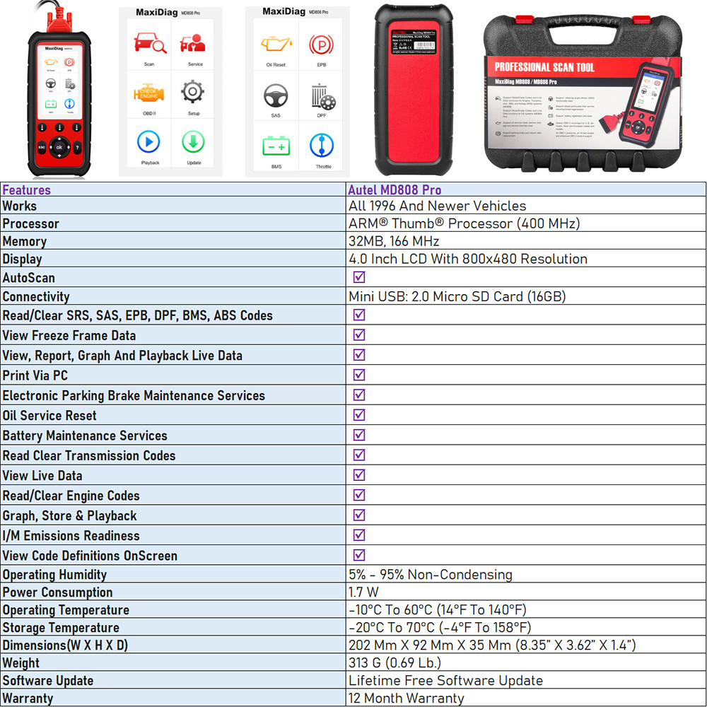 Autel MaxiDiag MD808Pro OBD2 Diagnostic Scanner All System Diagnostic Code Reader Oil Reset, EPB, SAS,DPF,BMS,Throttle,AF Adjust