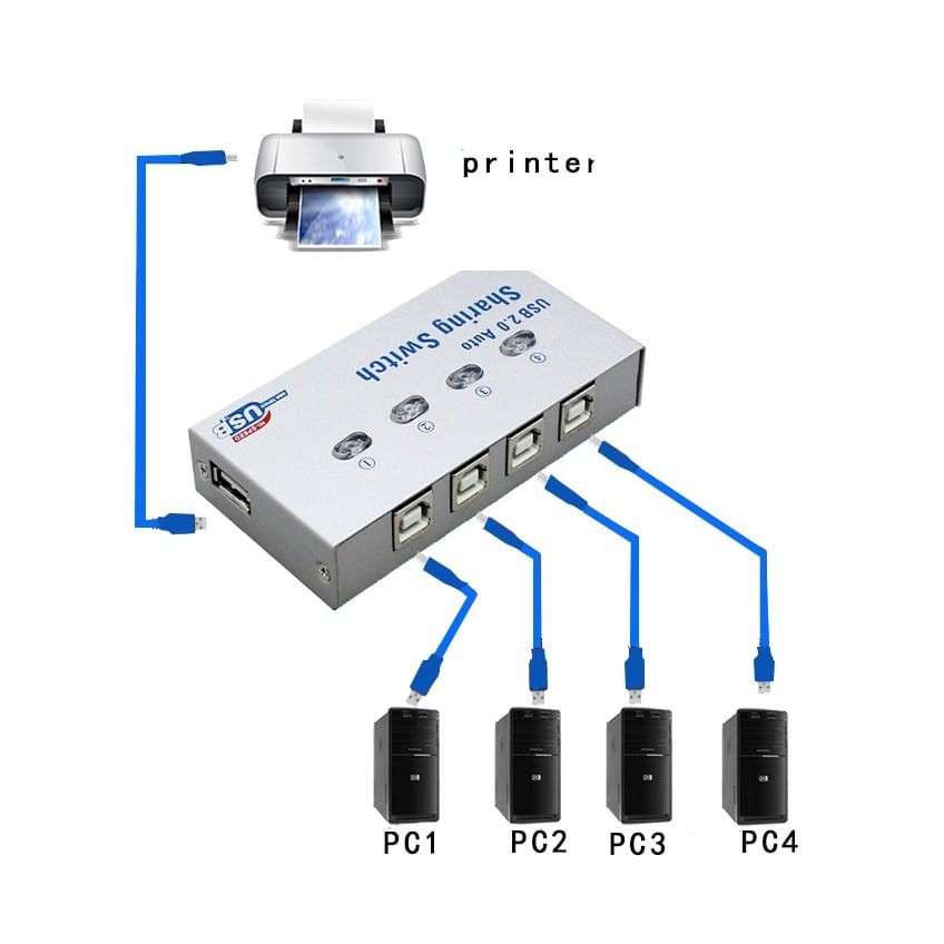 Auto Switch Usb Printer 2 Port 2Port 4 Port Sharing Switcher USB 2.0 Printer Kable Manual Otomatis