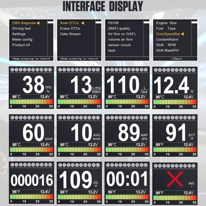 Autool X60 Obd2 Head-Up Display Hud, Speedometer, Tekanan Kendaraan
