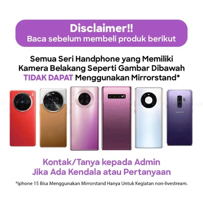 Autoshop Stand Mirror HP Live Stream Kamera Camera Utama Belakang Phone Holder Tripod Cermin Record Video dengan Pantulan Kaca Smartphone X6Z