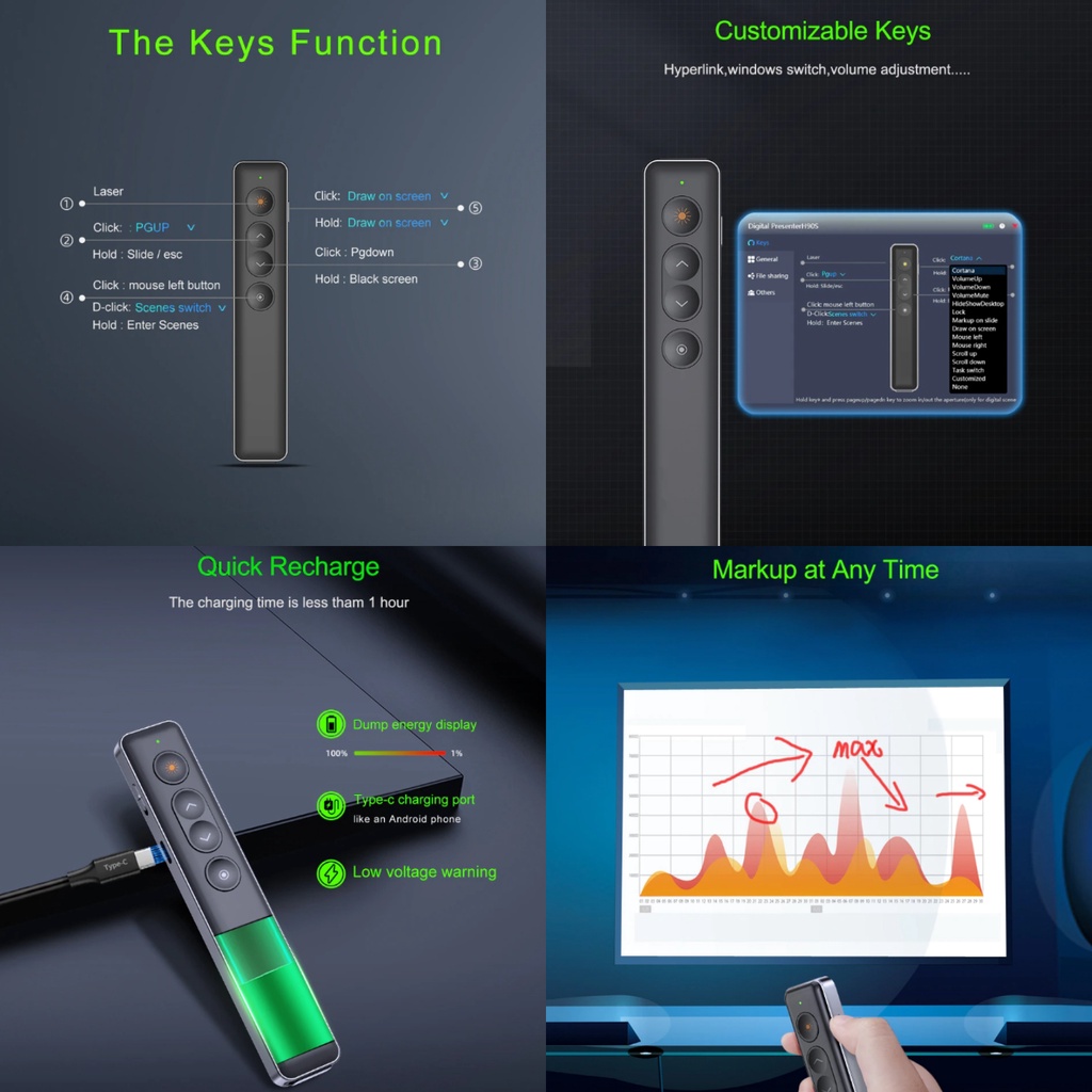 Avatto H90 Digital Laser Spotlight Magnify Wireless Presenter Pointer (not H100)