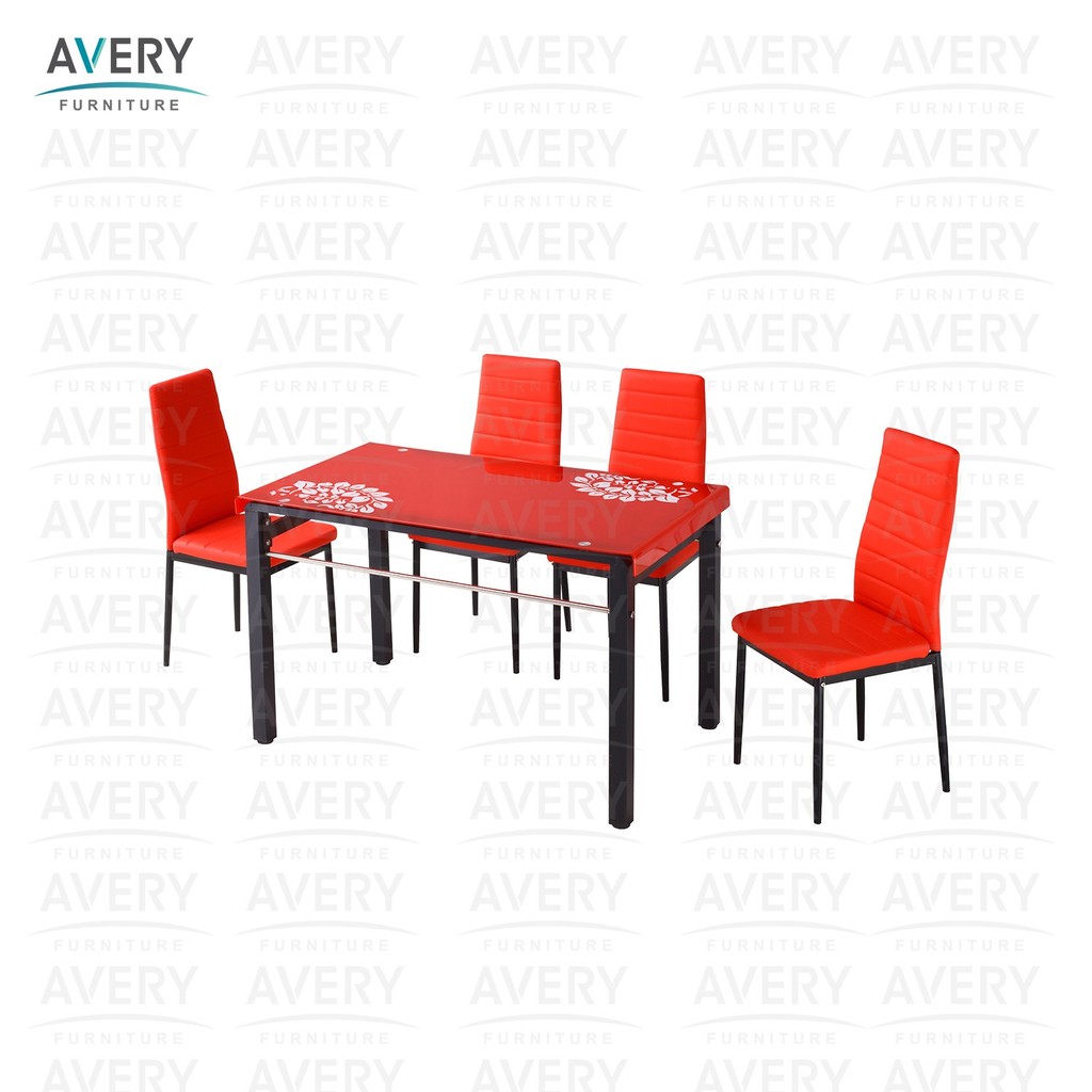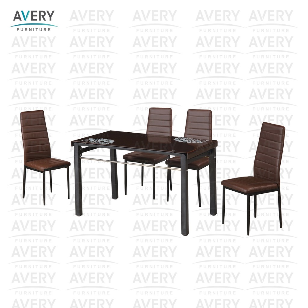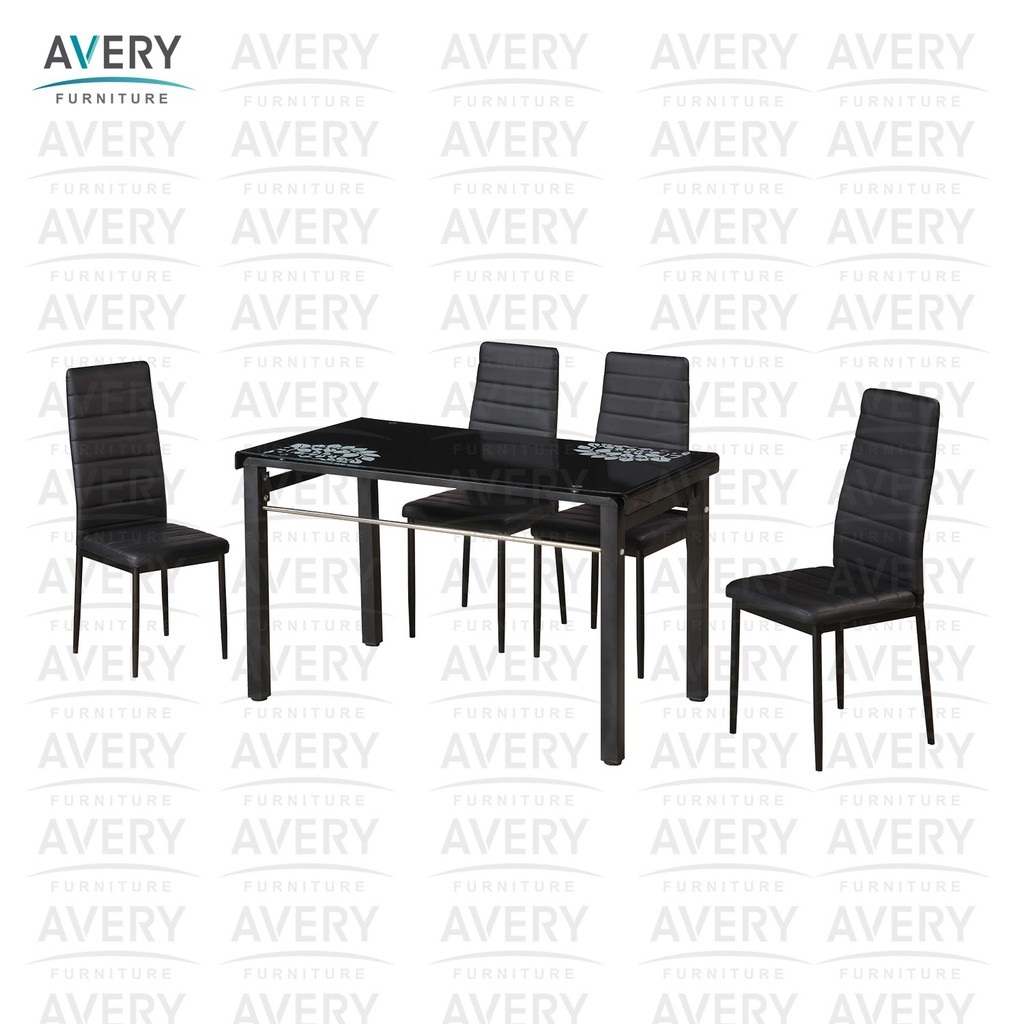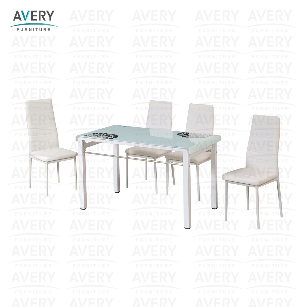 Avery - TDNS-ROMERO 4K - Meja Makan Kaca / Meja Set 4 Kursi