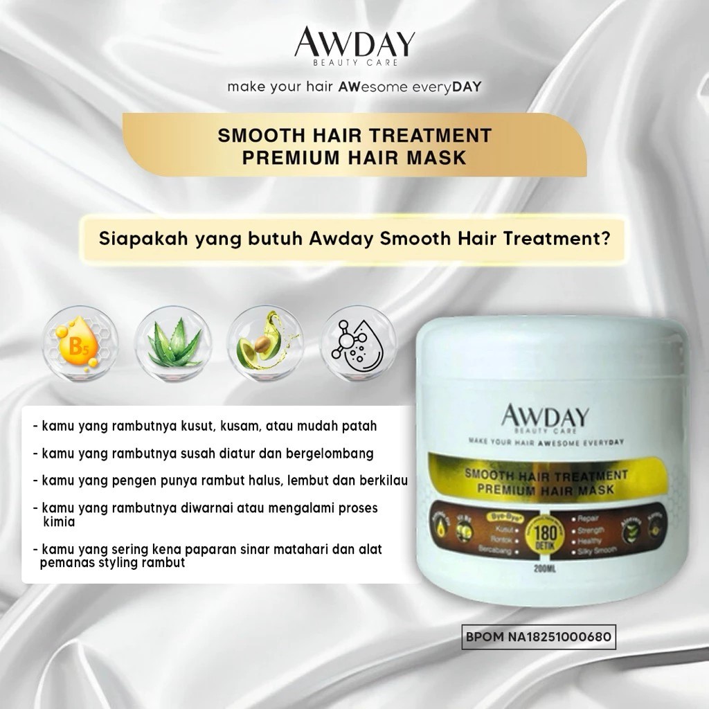Awday Shampo Rambut Non SLS Non Paraben + Hair Mask Masker Rambut Premium Smoothing 200ml