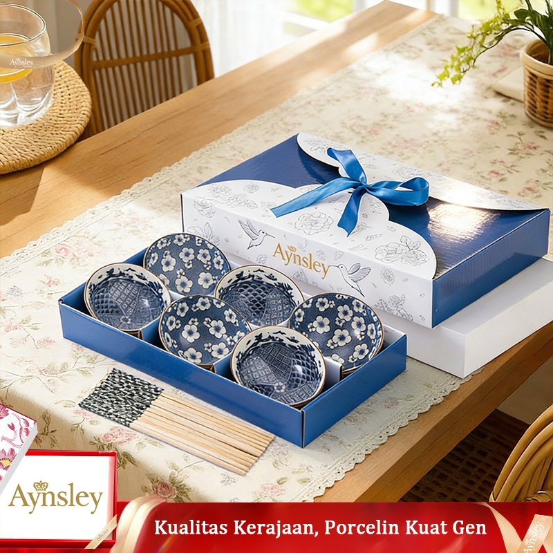 Aynsley-NEW Set mangkok dan piring souvenir porselen biru putih kelas tinggi kotak hadiah mangkok keramik mangkuk dan piring gaya jepang kado pernikahan