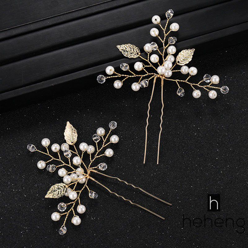 Azalea Jepit Rambut Model Daun Kristal Mutiara Imitasi Handmade Gaya Eropa untuk Wanita