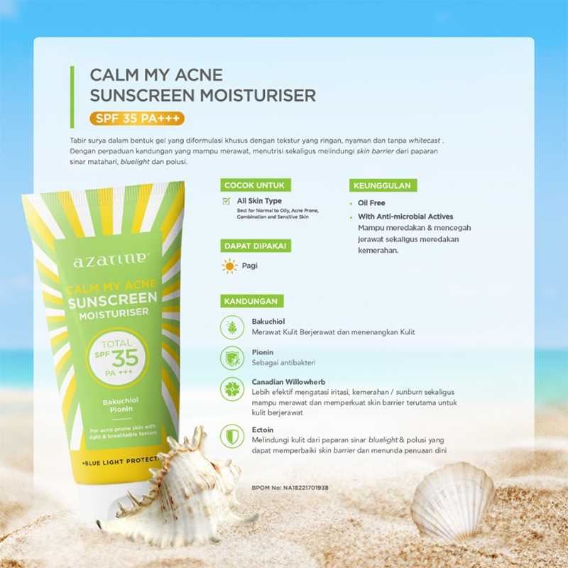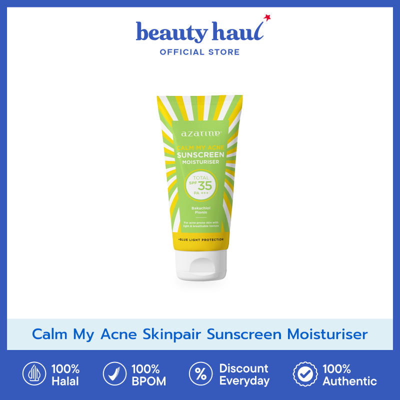 Azarine Calm My Acne Skinpair Sunscreen Moisturiser SPF35 PA+++ – Sunscreen Azarine untuk Kulit Berjerawat, Moisturizer Sunscreen dengan Perlindungan UV, Mengurangi Kemerahan, Menenangkan Kulit, Oil Control, dan Menjaga Skin Barrier