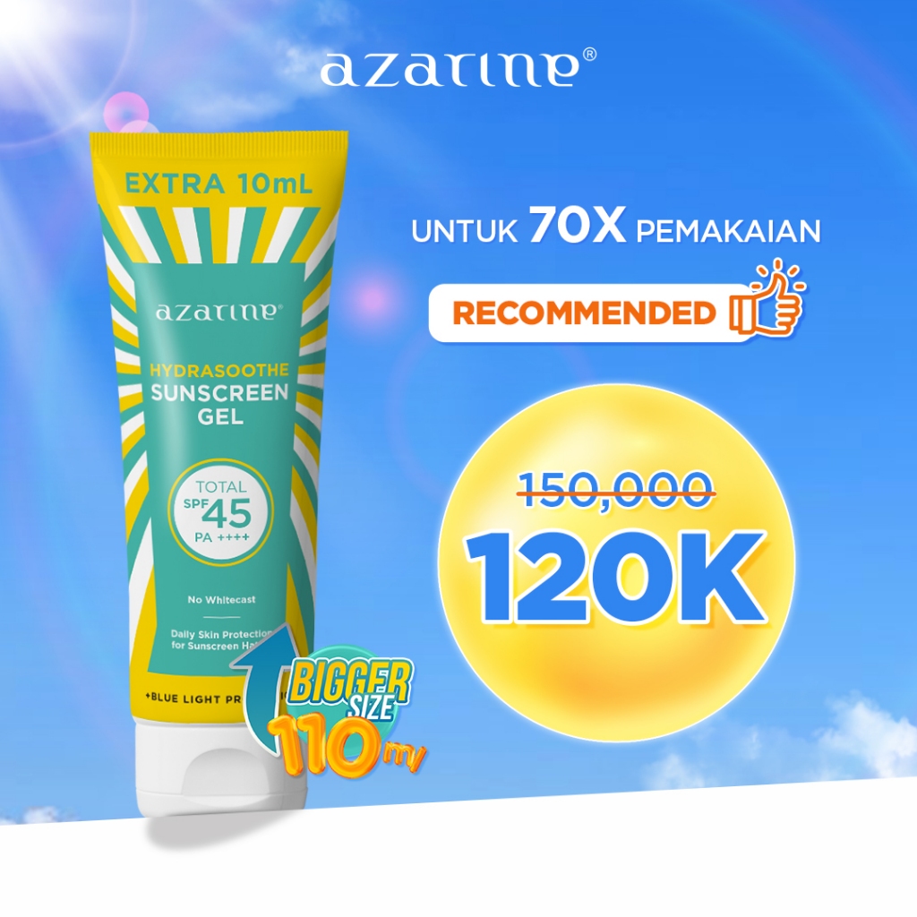 Azarine Hydrasoothe Sunscreen Gel SPF45 PA++++ [30ml/50ml/110ml] [LOLOS UJI INVIVO INVITRO] BEST SELLER Chemical Sunscreen Untuk Kulit Berminyak dan Berjerawat