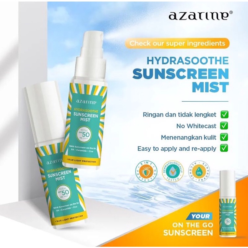 Azarine Hydrasoothe Sunscreen Mist Spray SPF50 PA++++ Sunscreen Azarine Spray On The Go