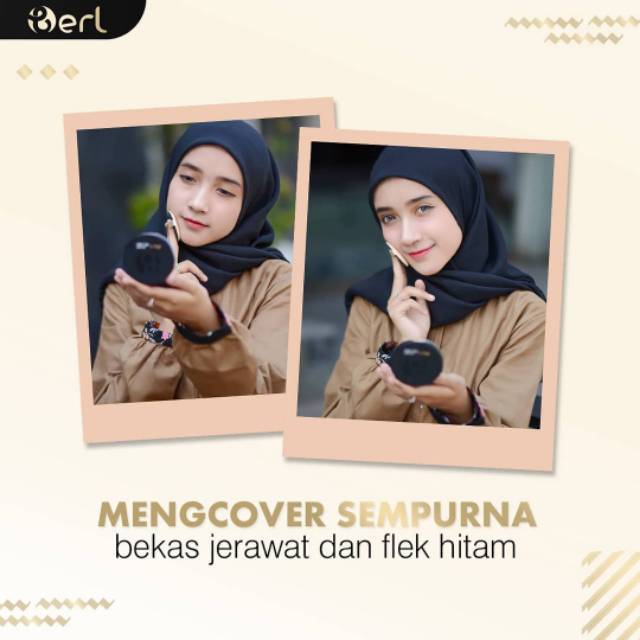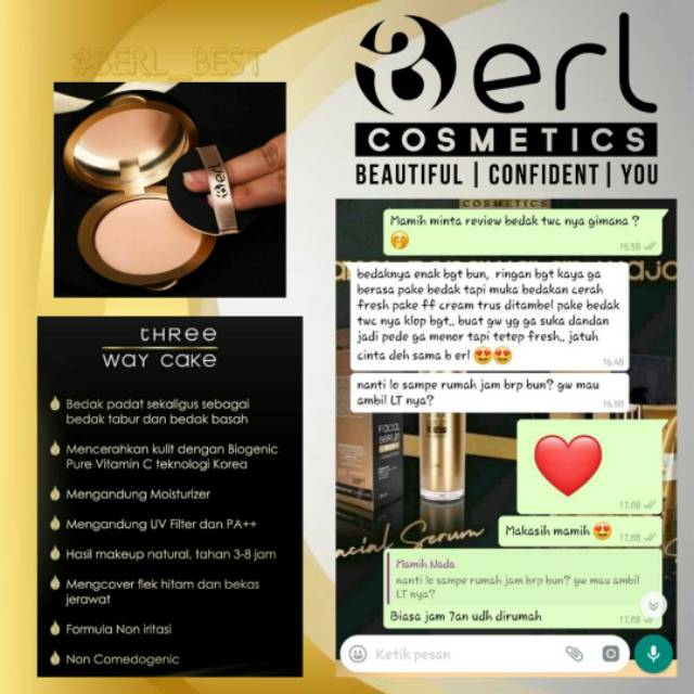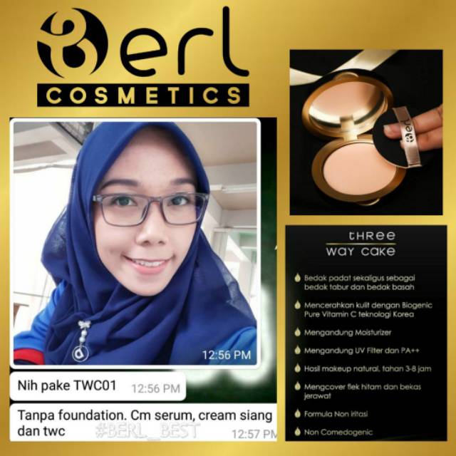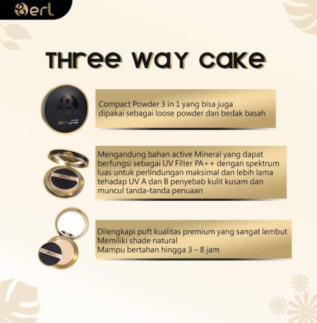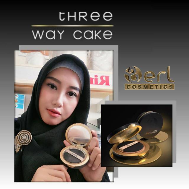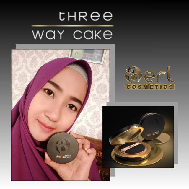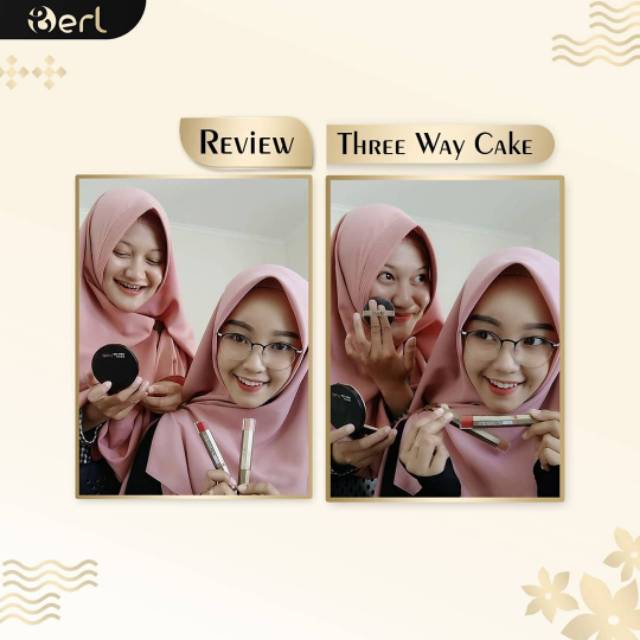 B Erl Cosmetics Three Way Cake Bedak 3 in 1 Bedak Tabur Padat Ringan dengan Vitamin C Korea