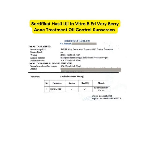 B Erl Sunscreen Oil Control Tabir Surya Berl Cosmetics
