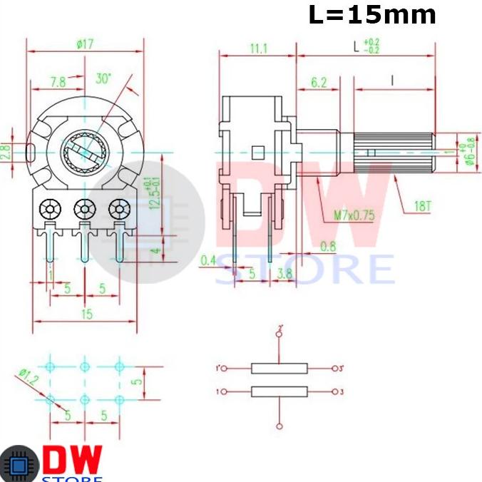 B100K 100K OHM POTENSIOMETER POTENSIO METER STEREO VARIABLE RESISTOR dw-s22 Ayo Order