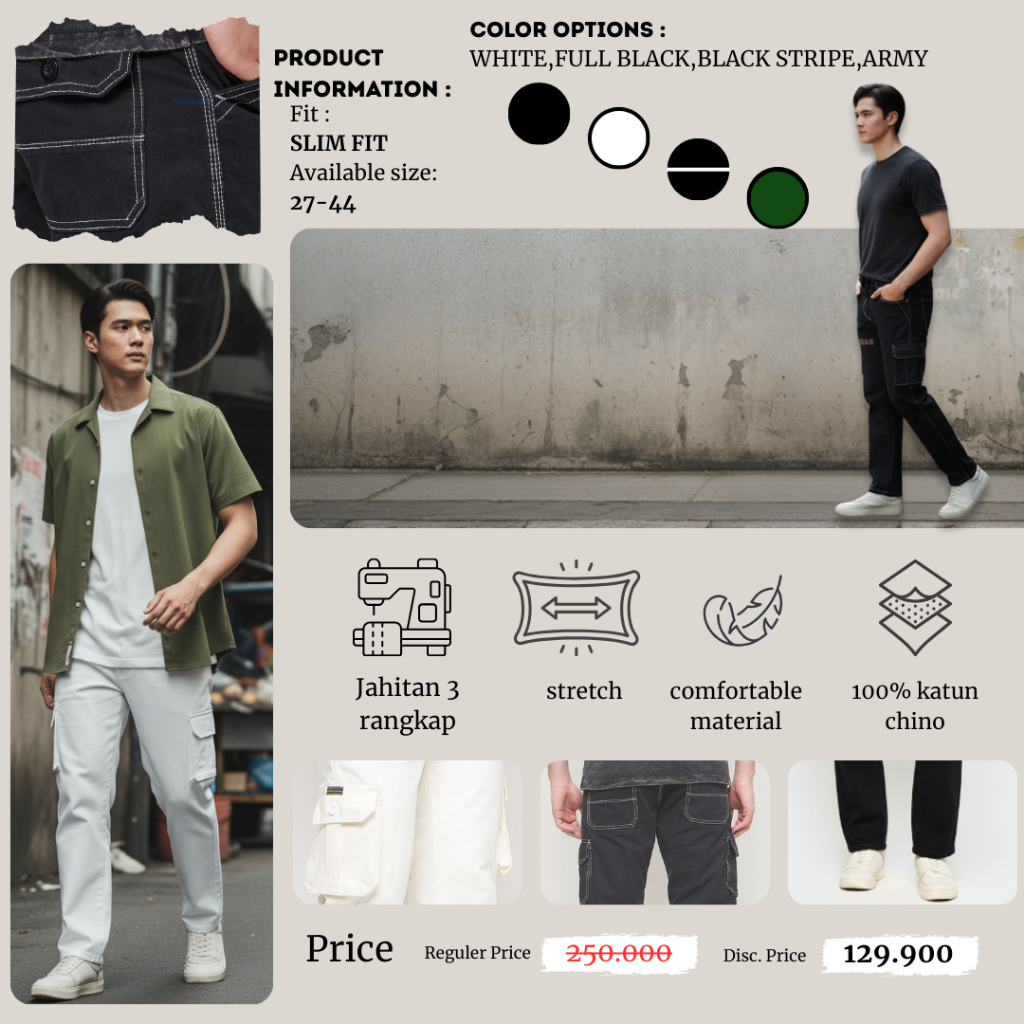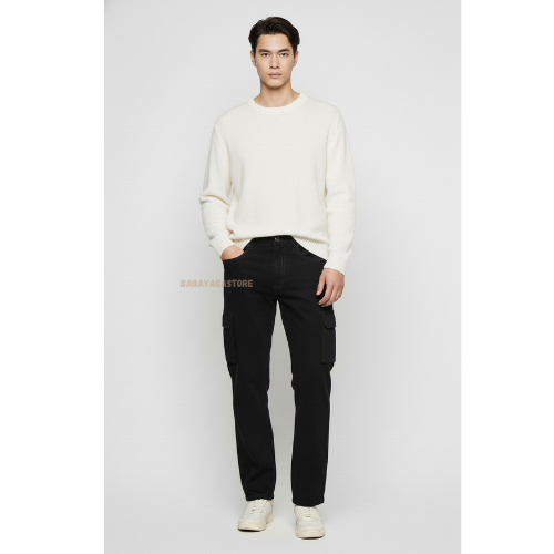 Celana Cargo Panjang Pria Reguler Fit Warna Black Stripe | Cargo Pants Casual Streetwear Kekinian Banyak Saku | Size 27–38