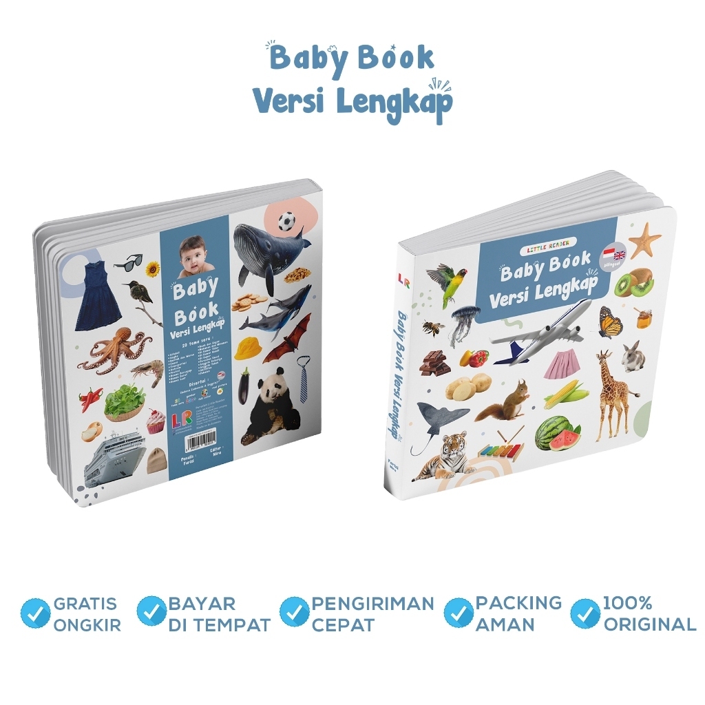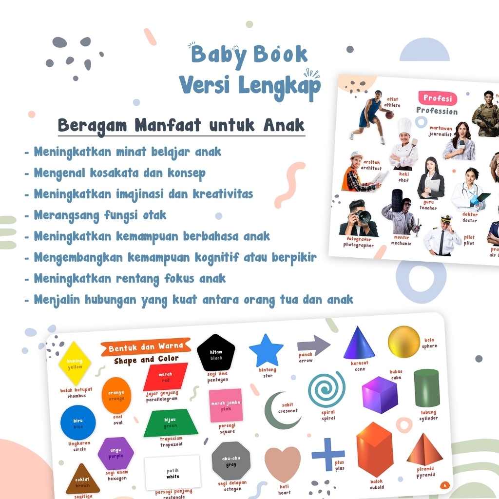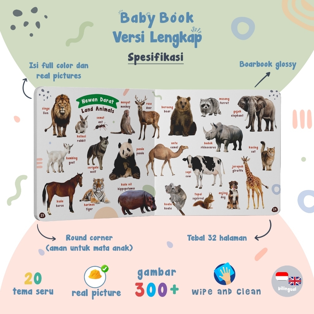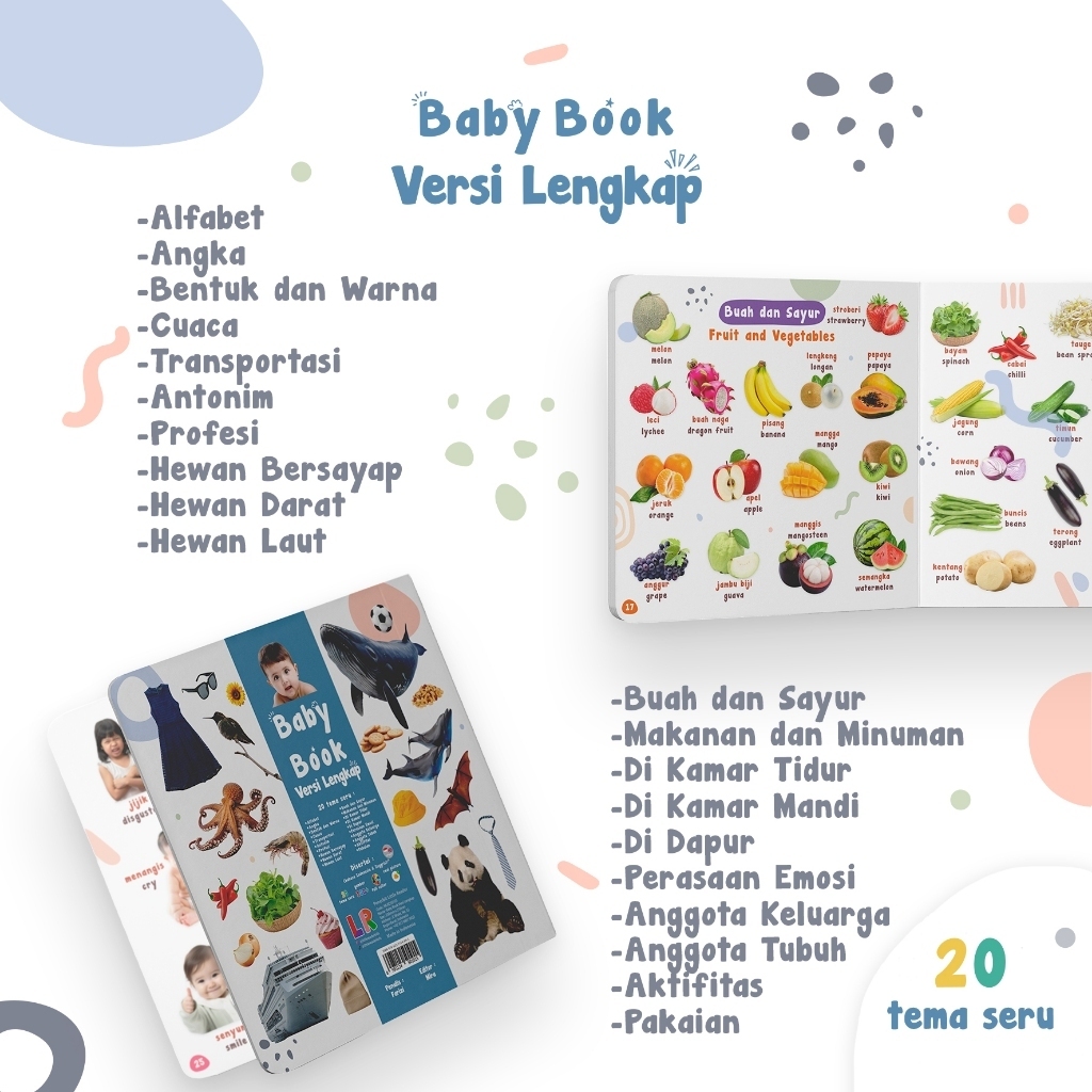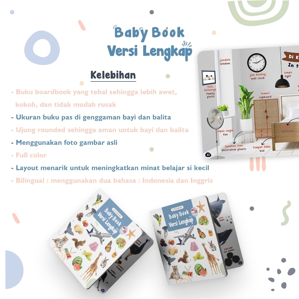 BABY BOOK SUPER LENGKAP EDISI TERBARU / Buku Bayi Versi Super Lengkap Waterproof Real Picture Full Color Tidak Mudah Sobek Boardbook Bilingual Kosakata Bahasa Indonesia-Inggris Newborn Tummy Time 0 3 6 12 Bulan sampai 1 2 3 4 5 Tahun