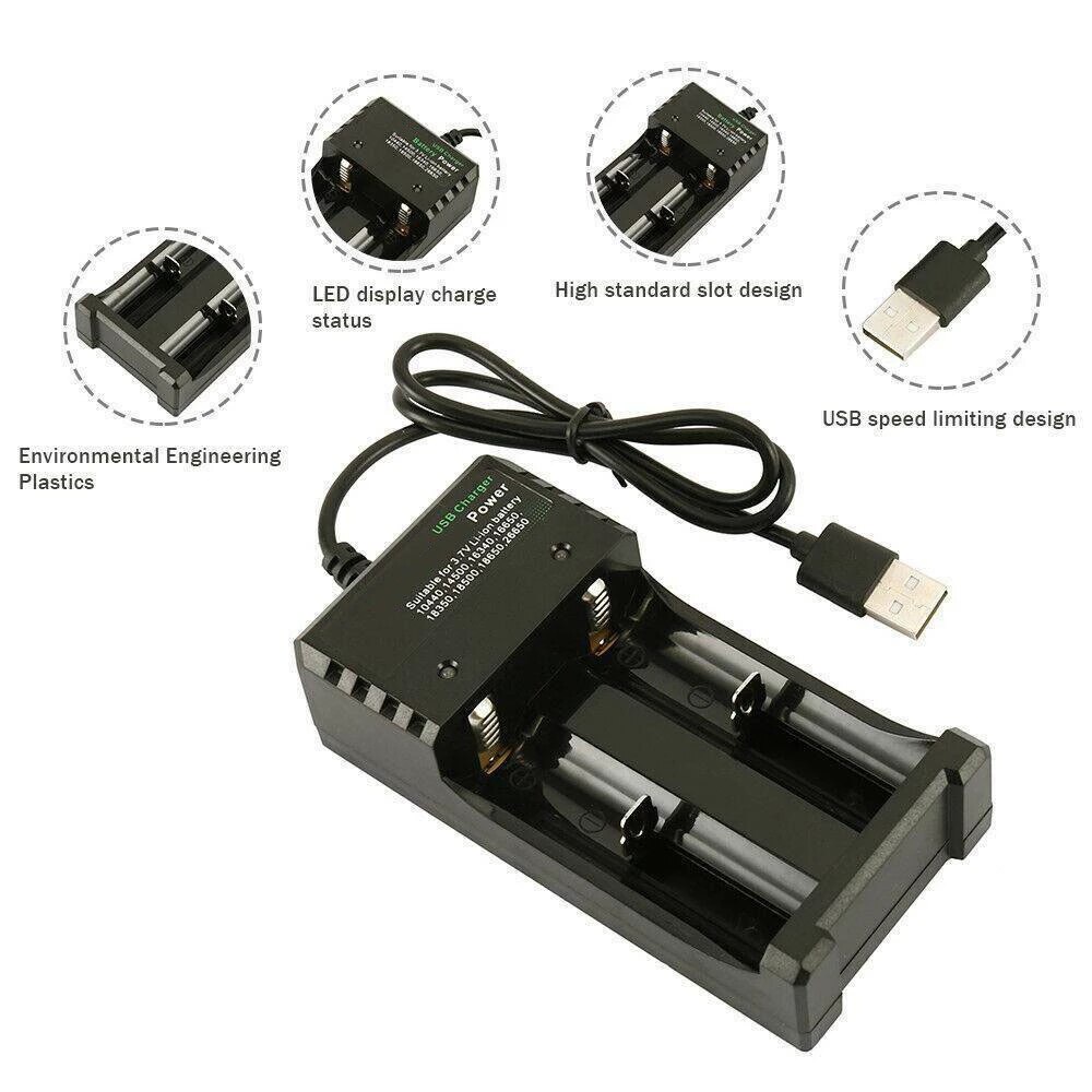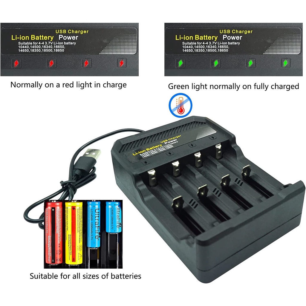 BABYBOZ - TAFFWARE GTF Charger Baterai USB Lithium 18650 1, 2, 4 Slot - MS-5D84A - Black