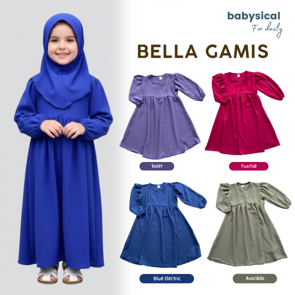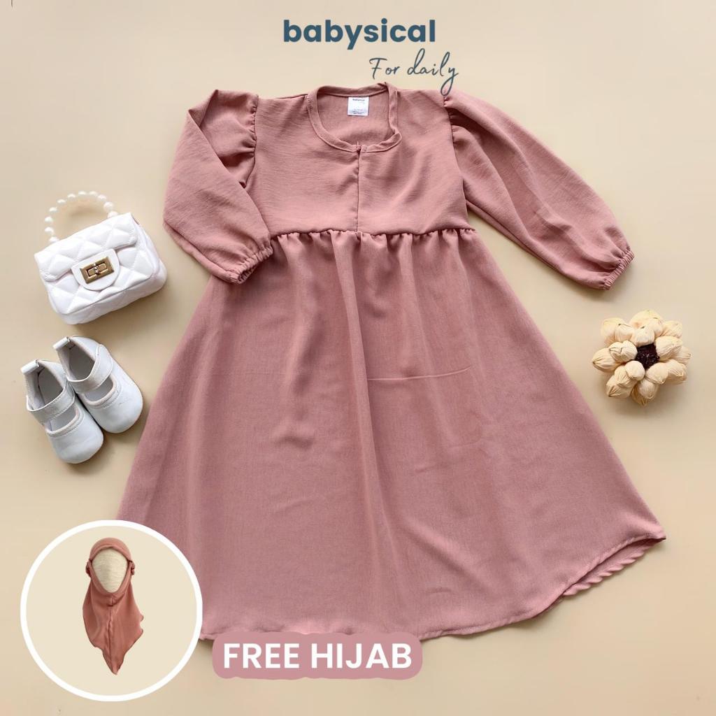 BABYSICAL 1-6 Tahun BELLA GAMIS FREE HIJAB / Baju Gaun Anak Gamis Muslim Anak Gratis Hijab Premium Gamis Muslim Baju Anak