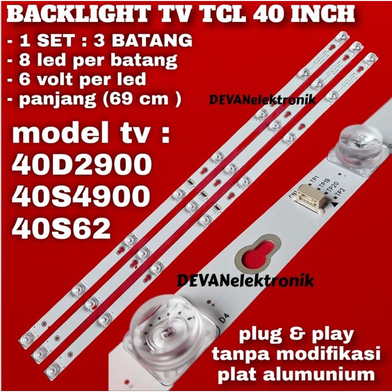 BACKLIGHT TV LED TCL 40 INC 40D2900 L40D2900 40S4900 40S62 BACKLIGHT TCL 40INCH 8K 6VOLT BL TV TCL 40D2900 40S4900 40S62