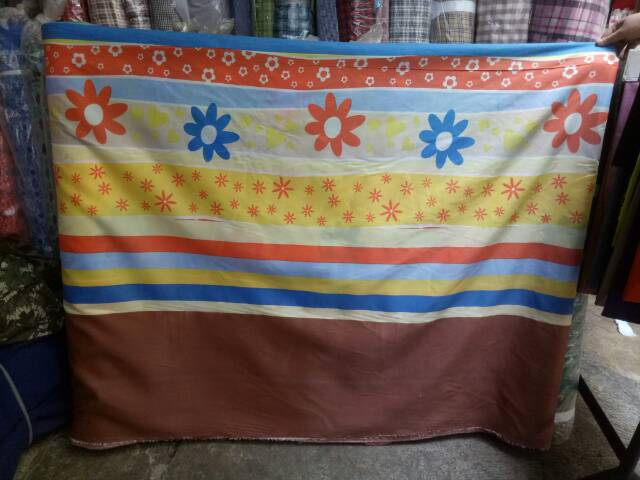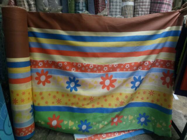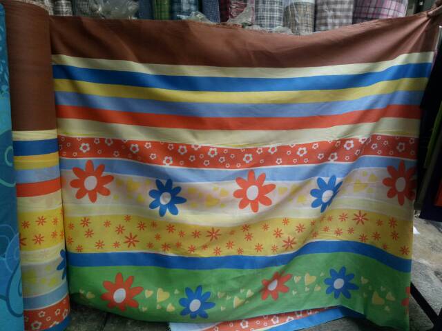 BAHAN KAIN SPREI MOTIF BUNGA SIMPLE SALUR STRIP RAINBOW METERAN LEBAR 2.4M / KAIN SPREI GULUNGAN