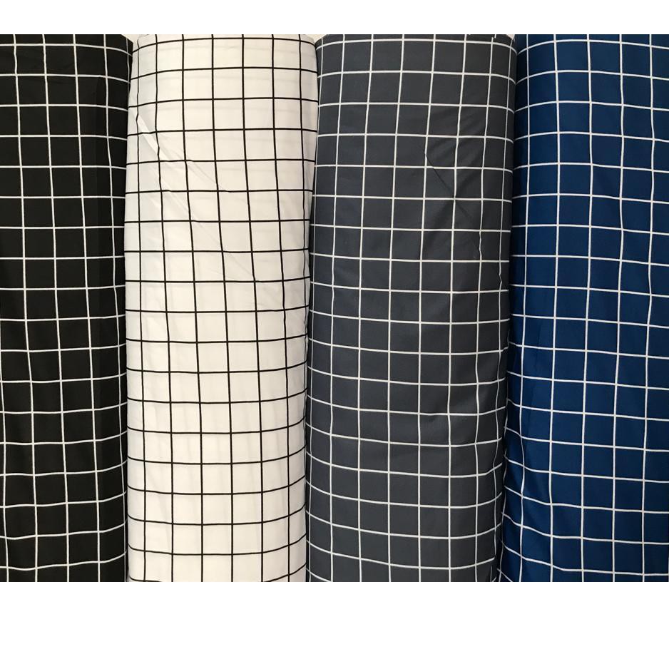 BAHAN KAIN TERLARIS KATUN Mikrotex Motif KOTAK Hitam Putih Abu Biru 4 cm Meteran GORDEN PIYAMA