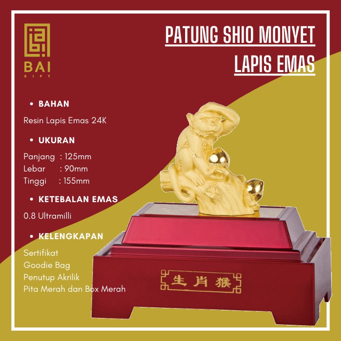 BAI GIFT PATUNG SHIO MONYET MINI LAPIS EMAS 24K PAJANGAN SHIO MONYET HADIAH PREMIUM