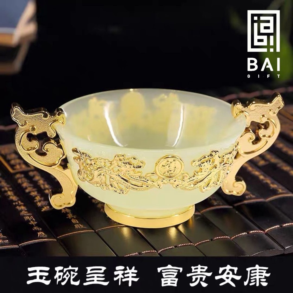 BAI GIFT Pajangan Mangkok Giok Pajangan Rumah Mangkok Giok Hoki Mangkok Harta Pembawa Rezeki