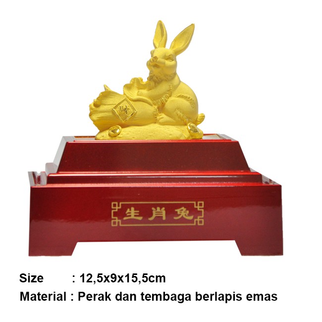 BAI GIFT Patung Shio Kelinci Lapis Emas 24k Pajangan Shio Kelinci Hadiah Prmeium Shio Kelinci