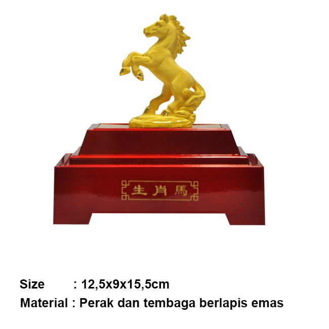 Patung Shio Kuda Mini Pajangan Kuda Lapis Emas 24k Hadiah Premium