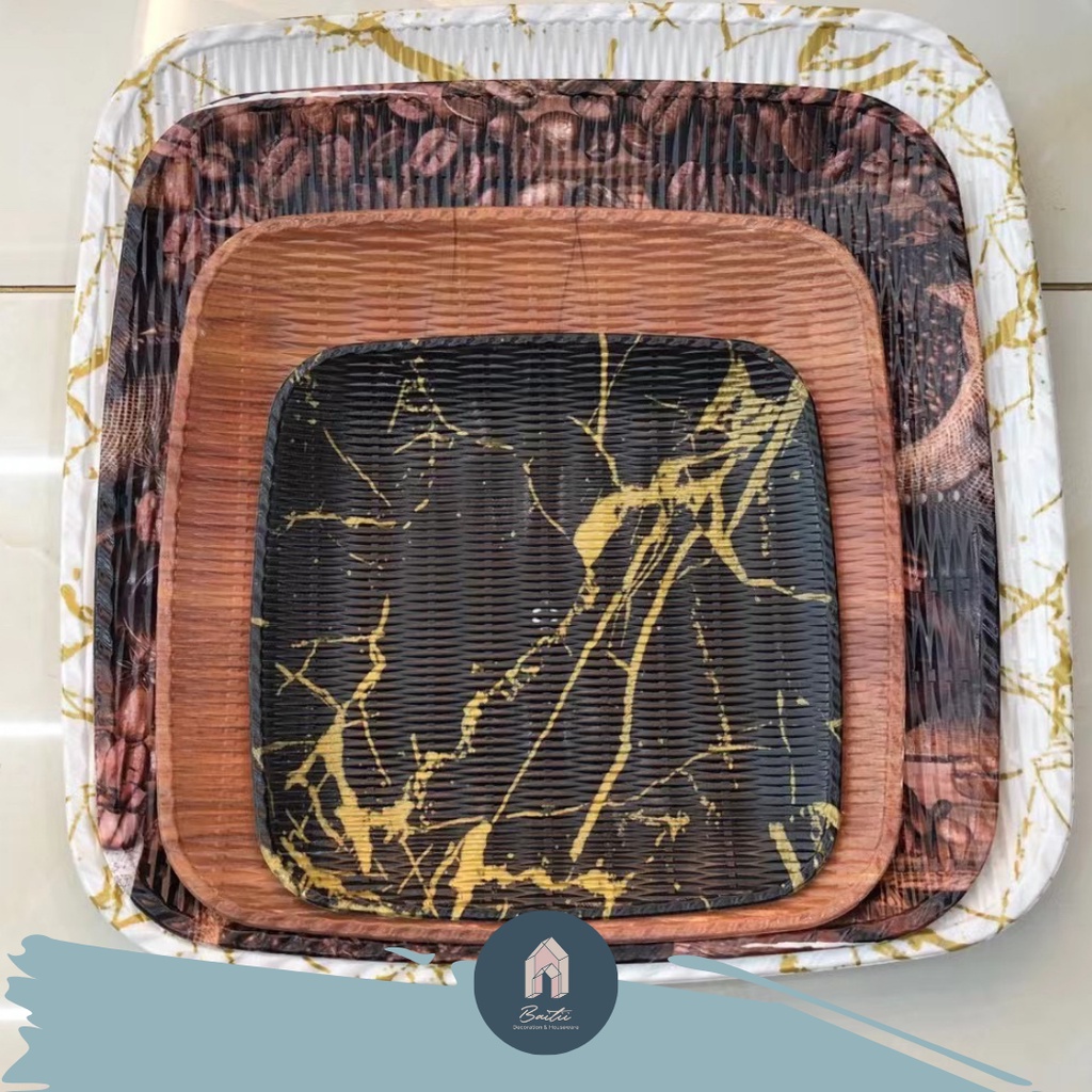 BAITII PIRING PLATING CAFE PLASTIK MOTIF MARBLE KAYU FOOD FOTOGRAFI / PIRING BUAH PIRING SAJI PLASTIK MOTIF MARMER / PIRING PLASTIK SNACK FRENCH FRIES RESTO LUCU DECOR ALAS FOTO