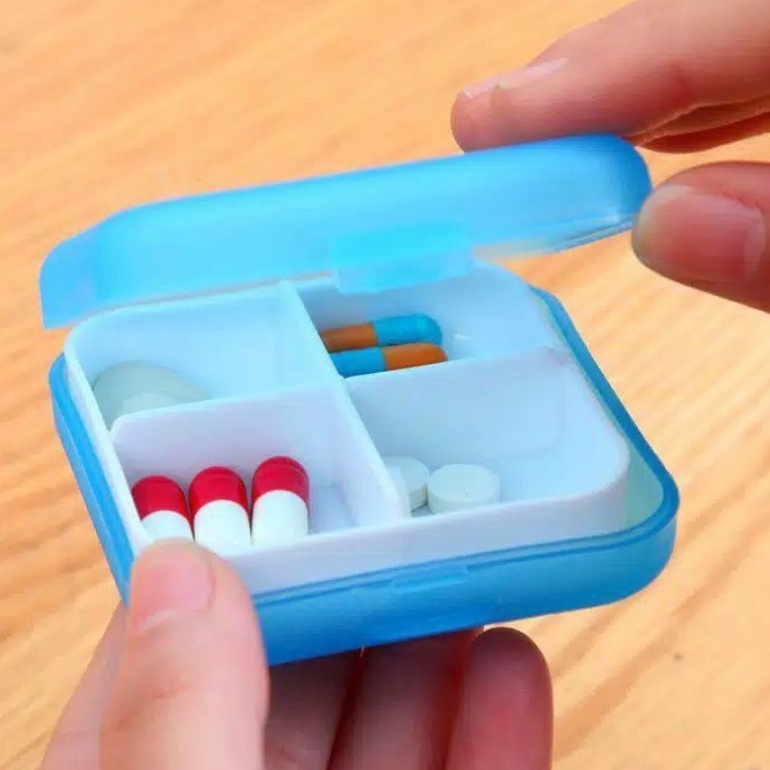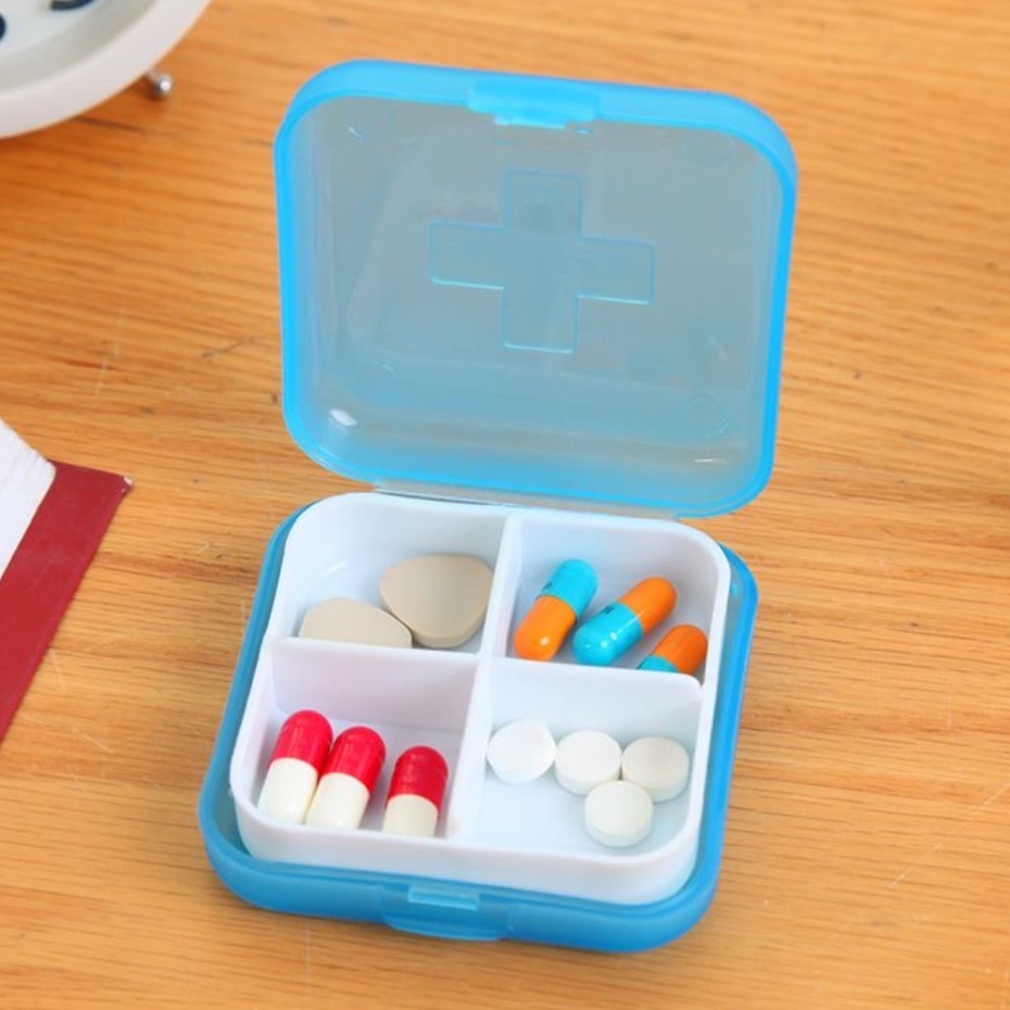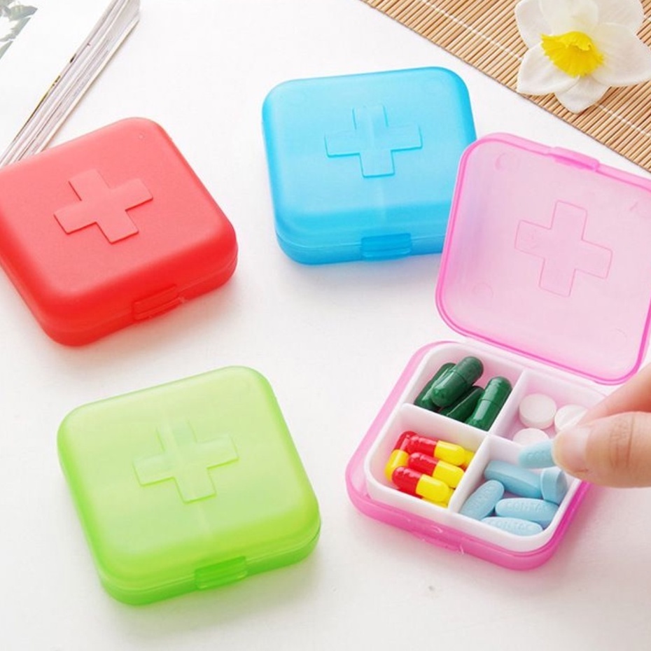 BAJ Kotak Mini Serbaguna Kotak Mini Obat Kotak Obat 4 Sekat Plastik Tempat Kotak Penyimpanan Manik Mote Kancing Serbaguna SS164