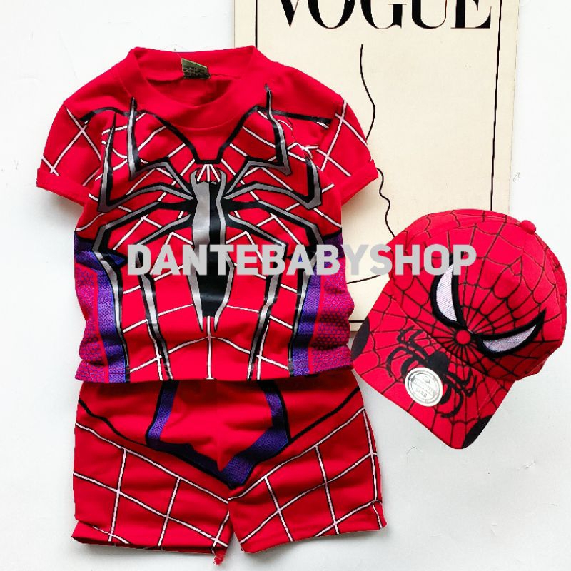 BAJU ANAK SPIDERMAN SETELAN ANAK LAKI LAKI NEW SPIDER MAN BISA PAKE TOPI UNTUK UMUR 1-10 TAHUN