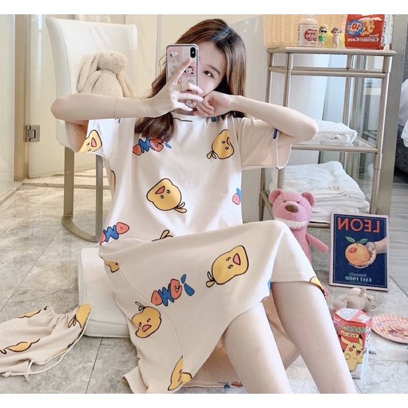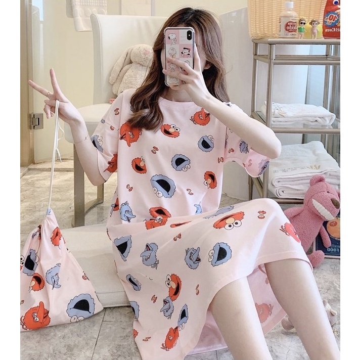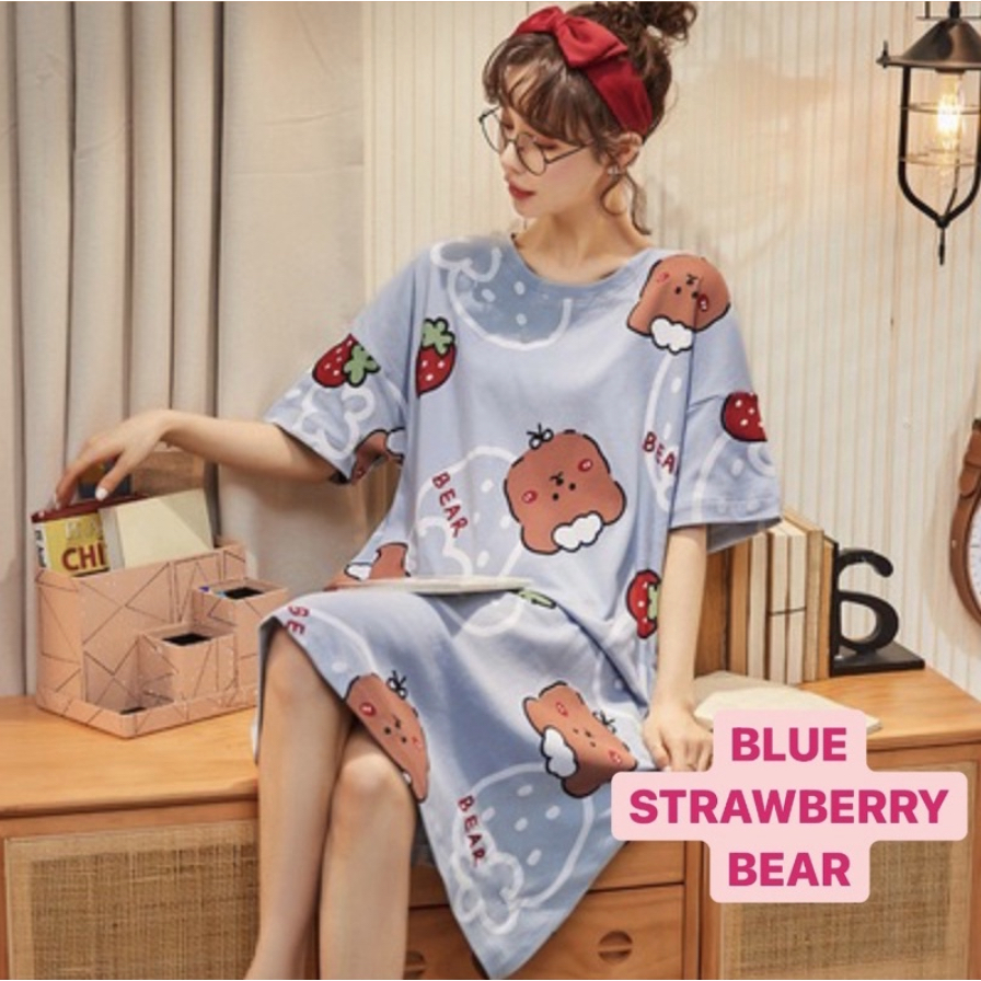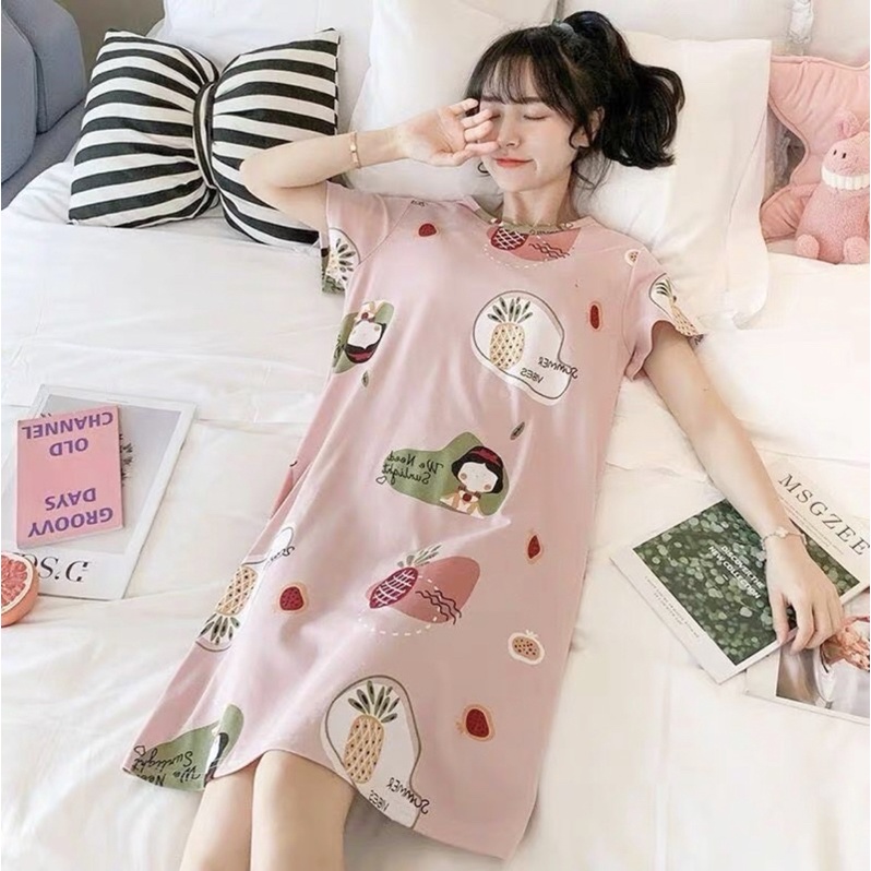 DASTER WANITA BAHAN ADEM HALUS / DASTER BUSUI PANJANG SELUTUT / LONG DRESS KOREA STYLE / BAJU TIDUR MOTIF LUCU / BAJU RUMAH WANITA