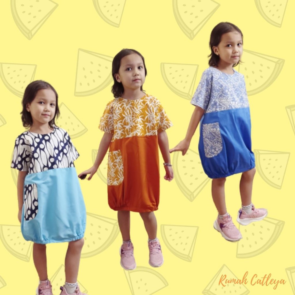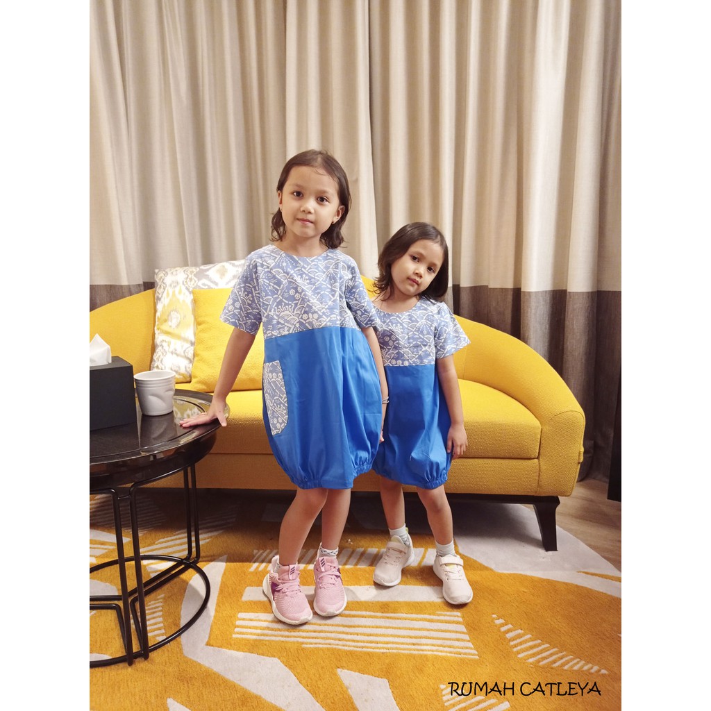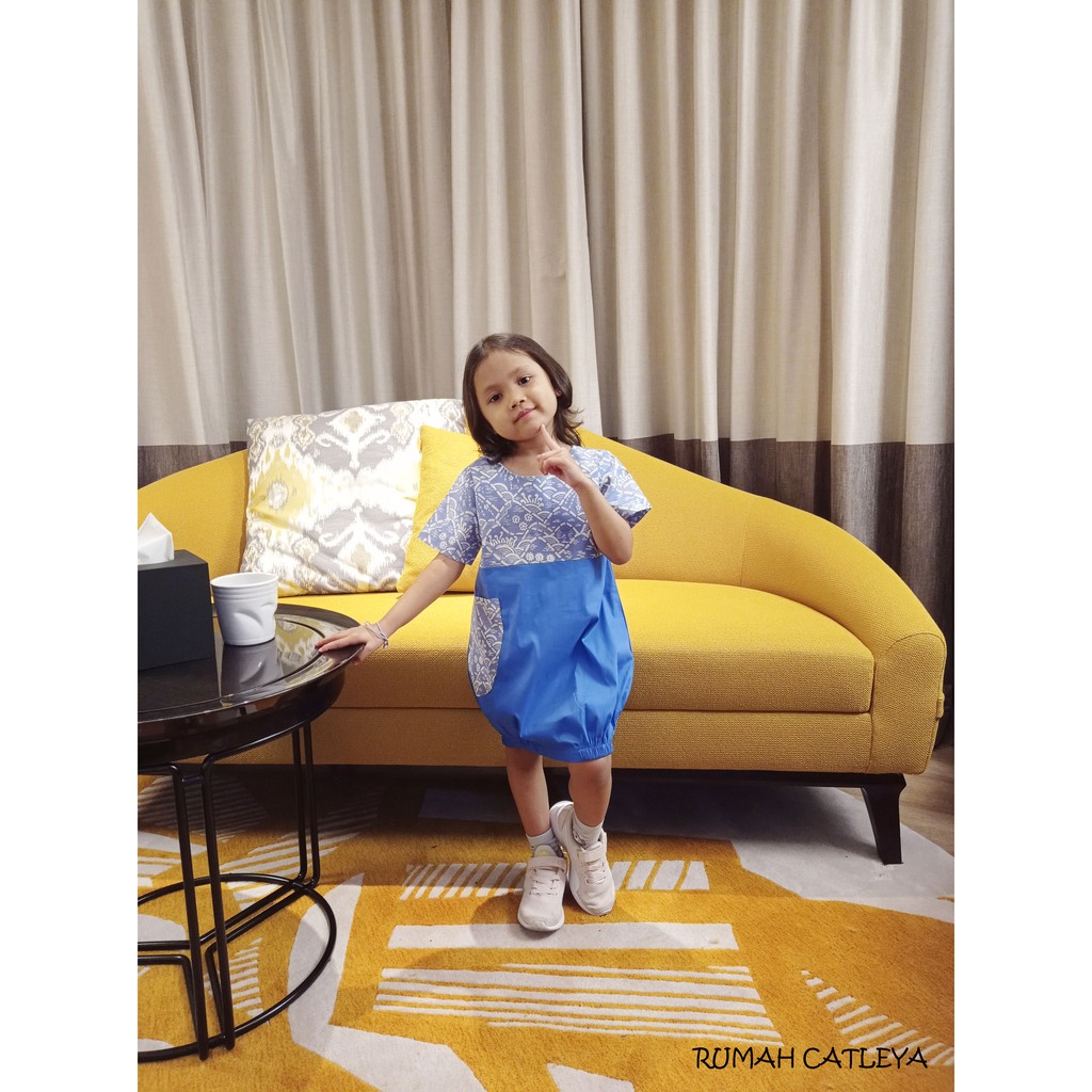 BAJU DRESS BATIK ANAK PEREMPUAN MARIGOLD SERIES BIRU